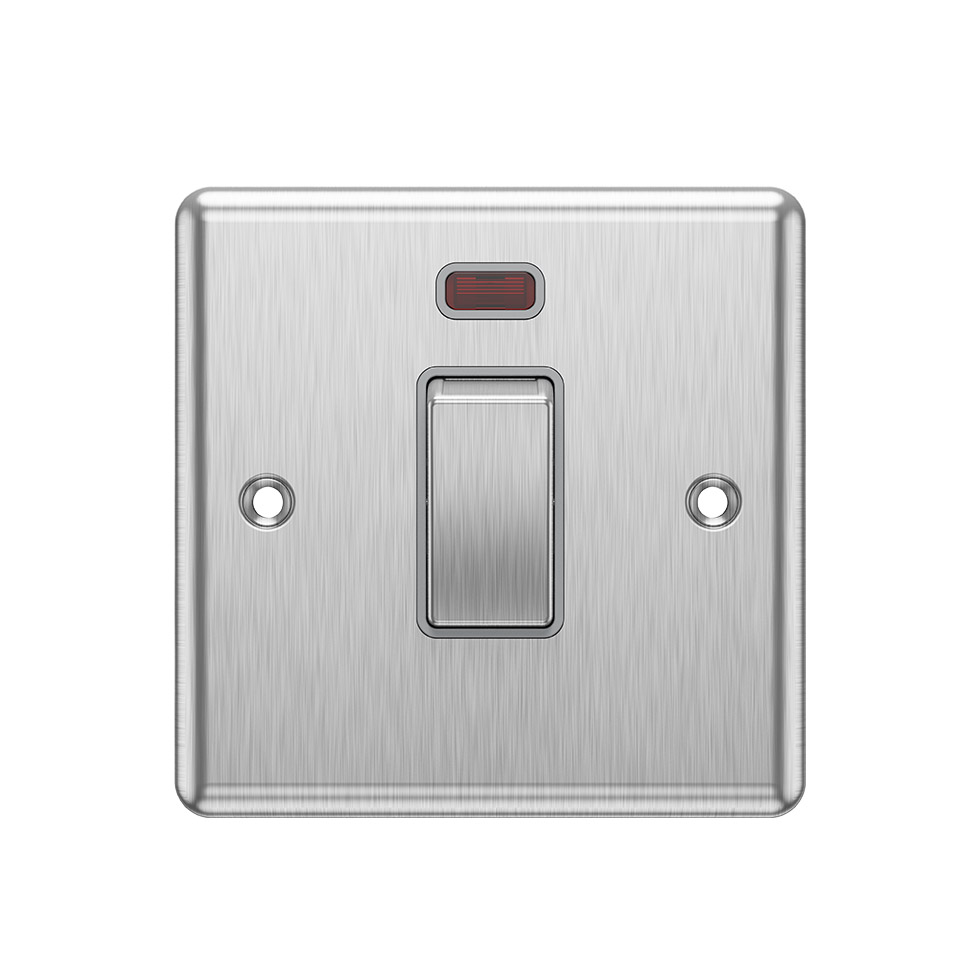 Control with Confidence – Opt for the 1G 45A Double Pole Cooker Switch Neon Brushed Chrome Grey.