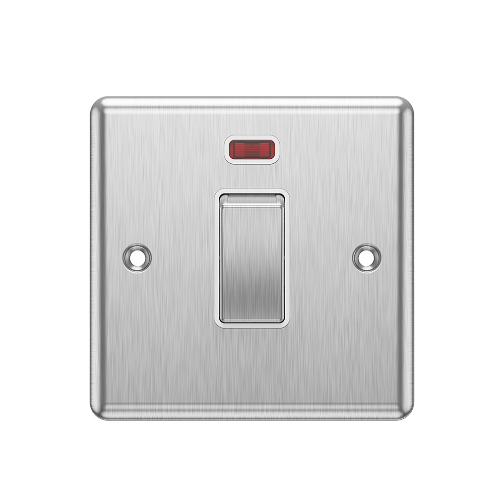 Switch to Safety and Style with Our 1G 45A Double Pole Cooker Switch Neon Brushed Chrome White – A Kitchen Essential!