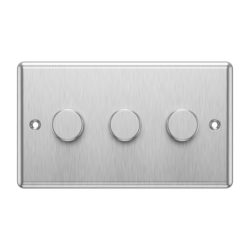Experience the perfect blend of style and functionality with our 2 Gang 3 Module LED Dimmer in Brushed Chrome. This contemporary dimmer switch allows you to adjust your LED lighting with precision, providing the right ambiance for any occasion. The brushed chrome finish not only adds a touch of sophistication to your wall but also blends seamlessly with modern home décor.