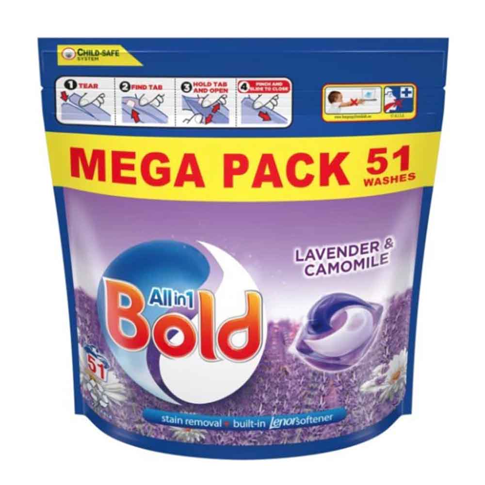 Experience brilliant cleaning and long-lasting freshness with Bold All In 1 Lavender & Camomile Pods. These convenient laundry pods provide powerful stain removal, deep cleaning, and fabric care in just one simple step. Infused with the soothing scent of lavender and camomile, they leave your clothes feeling fresh and soft with a calming fragrance that lasts.