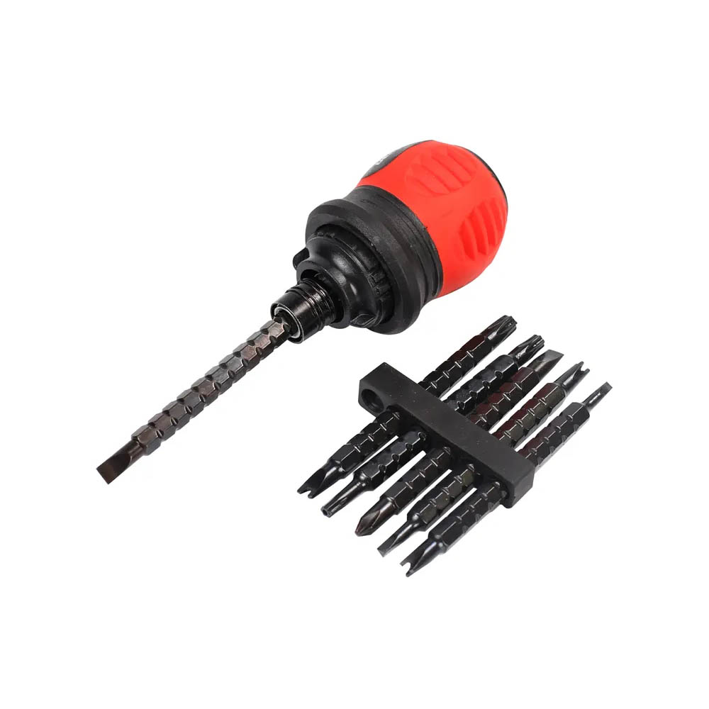 With our Dekton 13 In 1 Stubby Ratchet Screwdriver Set, you can effortlessly handle any screwdriving task. The set includes a variety of bit sizes and types, providing you with the flexibility to work on a wide range of fastening projects. Whether you're assembling furniture, repairing appliances, or performing complex DIY tasks, this set has got you covered.