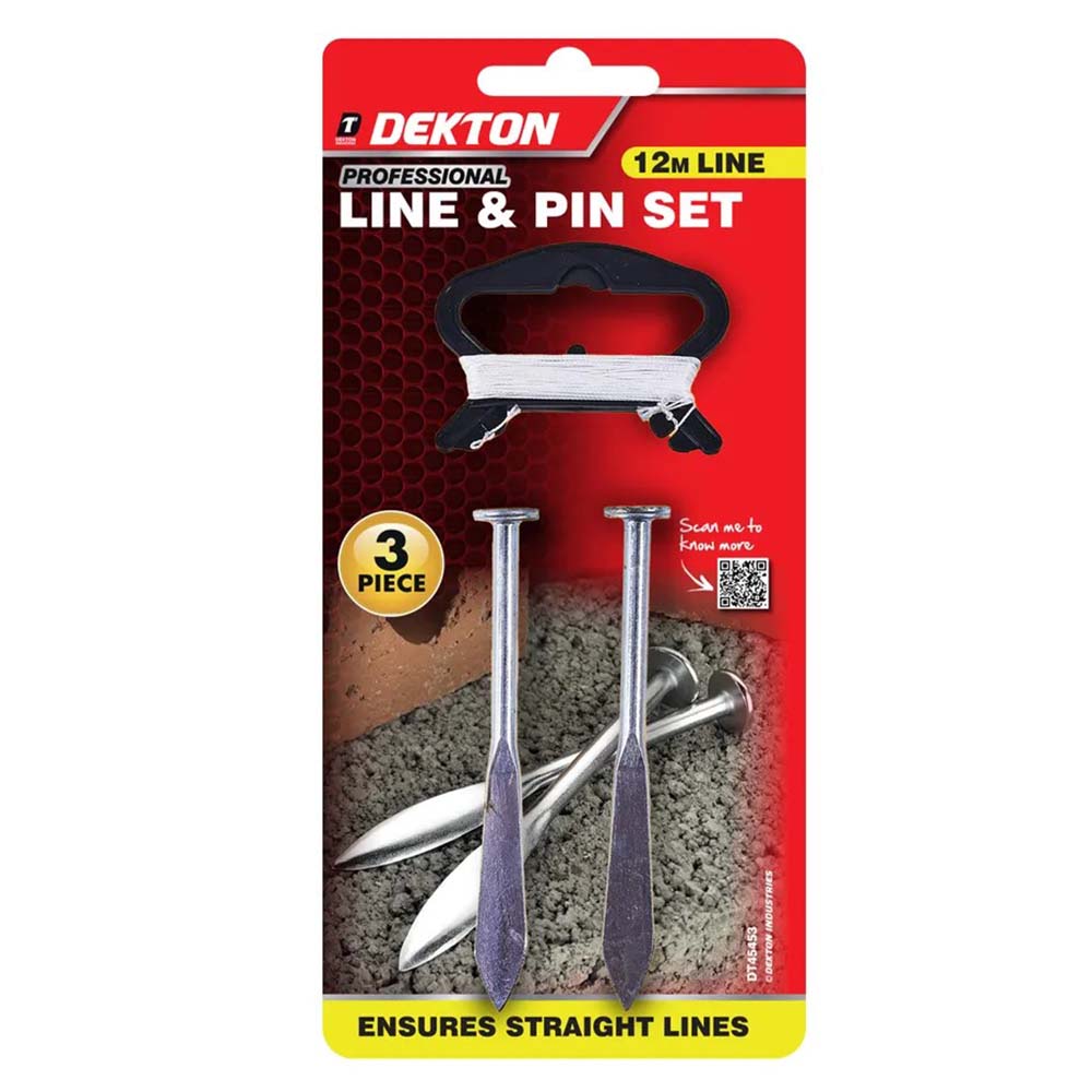The Dekton 2pc Line & Pin Set is more than just a tool – it's a game-changer for your construction and DIY projects. Experience the difference today and elevate your workmanship to a whole new level. Order now and say goodbye to crooked lines and inaccurate measurements.