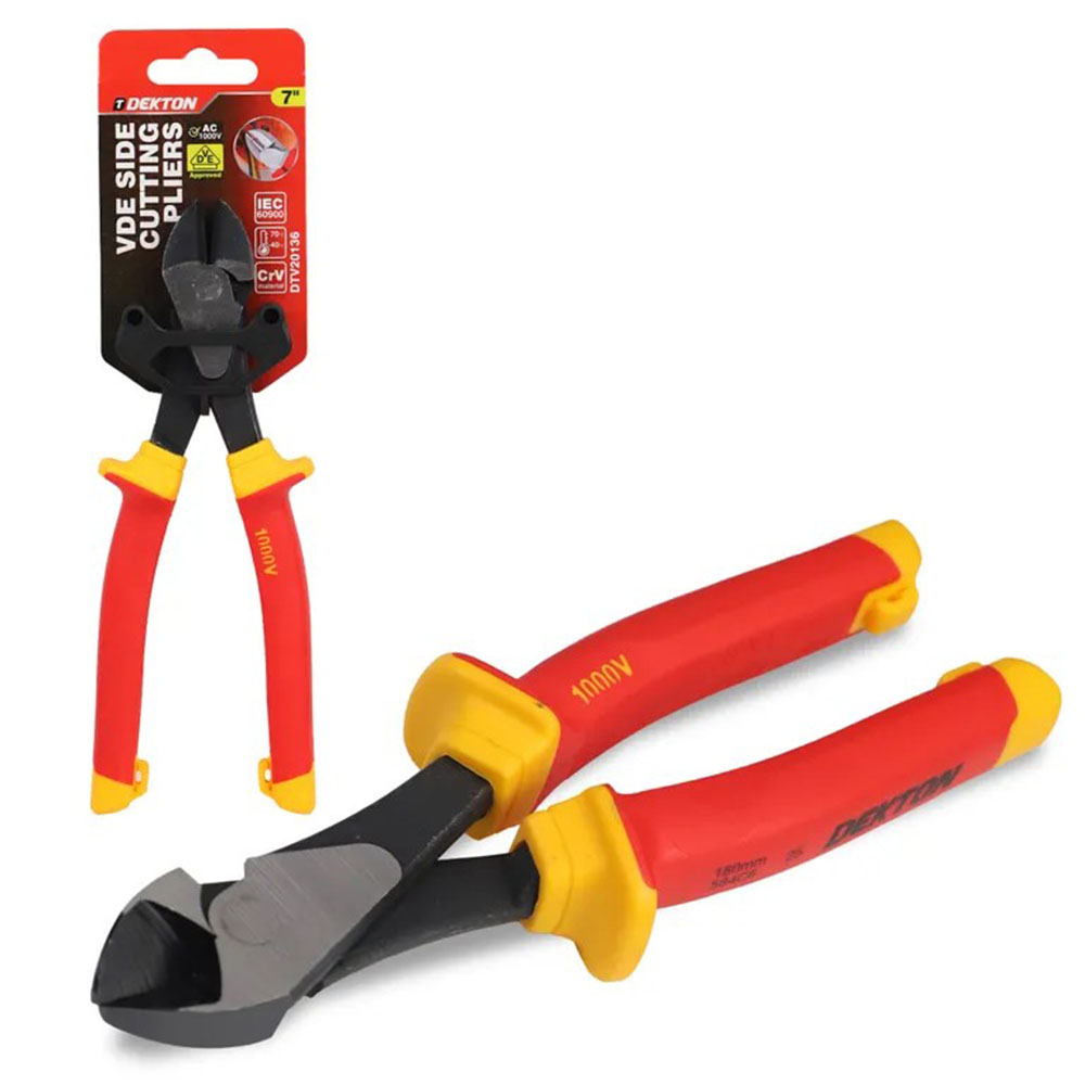Introducing the Dekton VDE Heavy Duty Diagonal Cutting Plier 7", a reliable and durable tool designed with top-of-the-line materials and technology to deliver outstanding performance. These pliers are a must-have addition to your tool kit, whether you are a professional tradesperson or a DIY enthusiast.