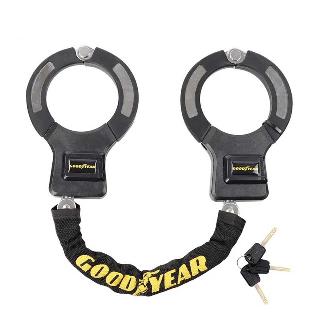 Secure your belongings with confidence using the Goodyear Heavy Duty Twin Cuff Lock, a robust and reliable solution for enhanced safety. Built with high-strength materials, this lock is designed to withstand tough conditions and deter theft. Its twin cuff design provides extra security, making it ideal for securing bicycles, gates, tools, or other valuable items.