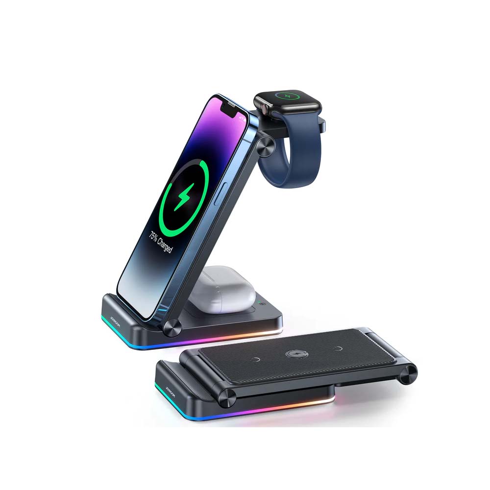 With the Joyroom 3in1 Foldable Wireless Charging Station, you can charge your smartphone, smartwatch, and wireless earbuds simultaneously. No more worrying about untangling wires or finding multiple outlets. The charging station uses advanced technology to provide fast and efficient charging, ensuring your devices are always ready for use.