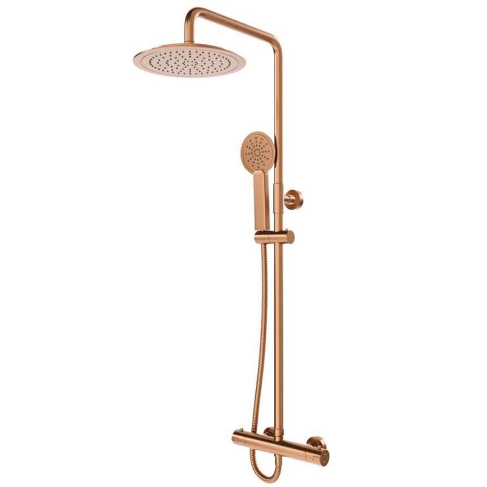 Upgrade your bathroom with the Mendi Round Thermostatic Bar Valve C/W Shower Kit in Brushed Bronze. Your blissful shower experience awaits!