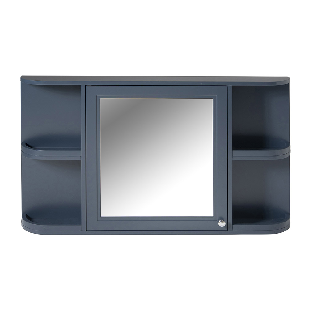 The sleek, modern design of the Merrion Mirror Cabinet will seamlessly blend with any bathroom decor. Its clean lines and minimalist style reflect a contemporary aesthetic, while the slate navy color adds a touch of timeless elegance.
