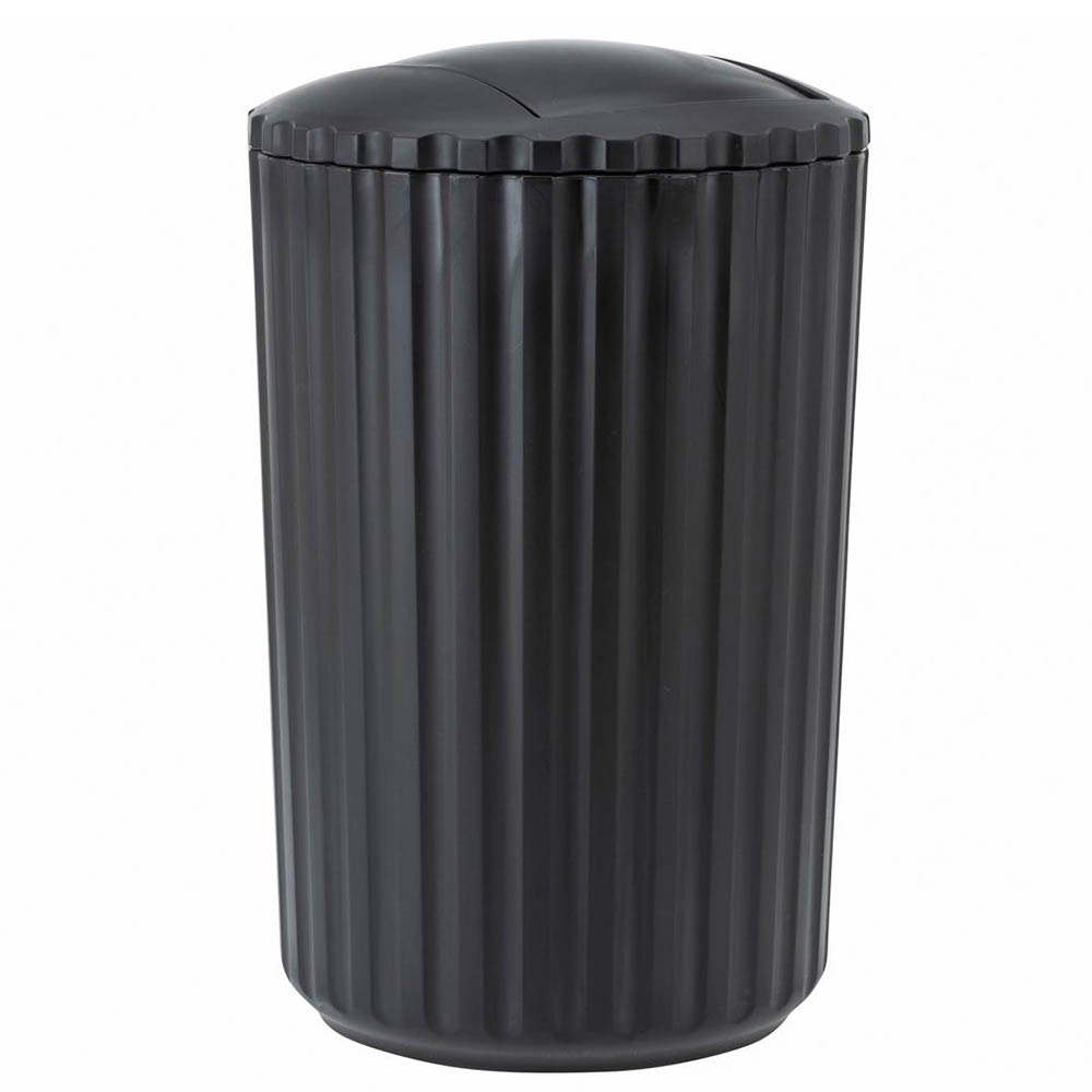 This Minas Swing Bin is not just a bin. It's a compact, stylish, and practical solution to managing your waste efficiently. Designed with a durable black ribbed finish, it adds a touch of modern sophistication to any room. The swing top lid ensures easy disposal of waste while concealing the contents for a cleaner appearance. With its 3-litre capacity, it's ideal for bathrooms, home offices, bedrooms, or anywhere where space is at a premium.