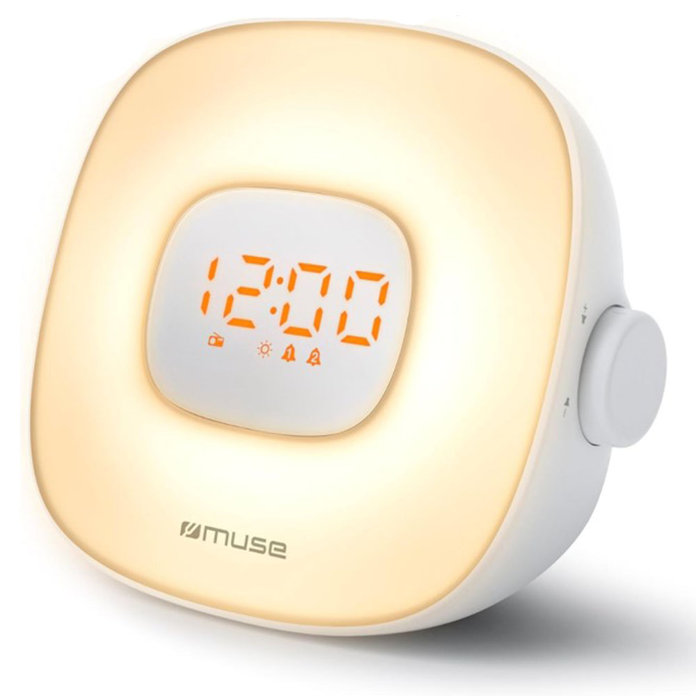 Transform your mornings with the Muse Wake Up Light Clock Radio, a modern solution for gentle, natural waking. Combining a gradual light increase that simulates sunrise with customizable sounds or radio options, this clock radio helps you start each day feeling refreshed. Ideal for any bedroom, this versatile wake-up light also doubles as a relaxing bedside lamp, creating the perfect atmosphere for winding down in the evening or waking up rejuvenated.