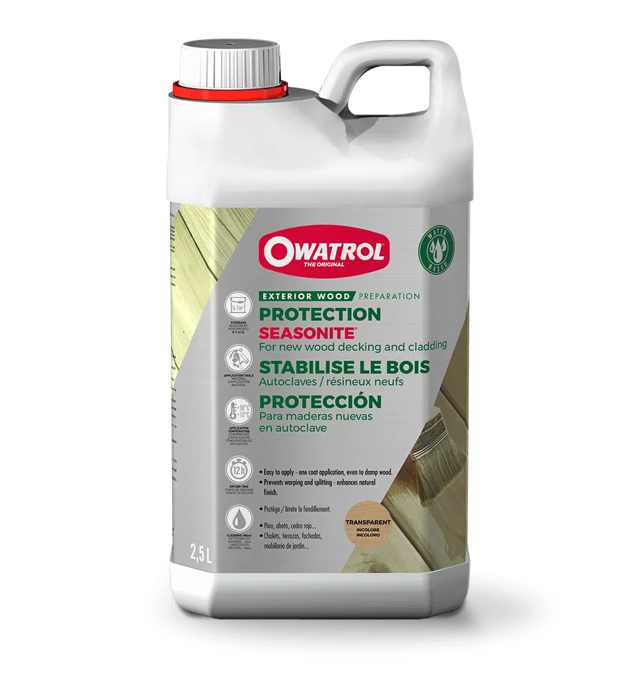 Seasonite is Owatrol’s ground breaking product for protecting new wood during its most vulnerable first year. When new wood is first exposed to the elements it is particularly vulnerable from the effects of excessive moisture and UV rays.