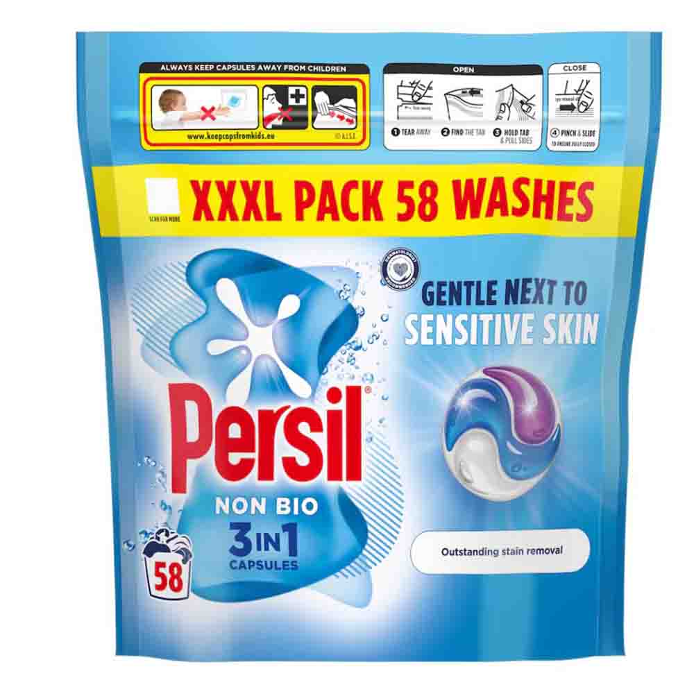 Transform your laundry routine with the Persil 3 In 1 Non Bio Caps 58 Wash. It's not just a laundry detergent - it's a game-changer!