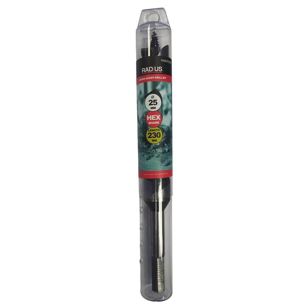 Transform your woodworking projects with the Radius 25mm X 230mm Hex Shank Auger Bit. It's the perfect tool for both professional carpenters and DIY enthusiasts. Choose efficiency, durability, and precision. Choose the Radius Hex Shank Auger Bit.