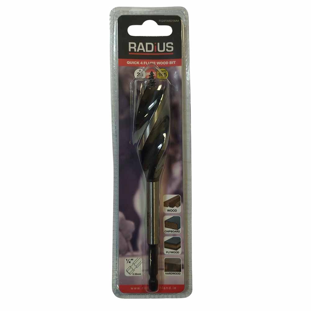 The Radius Quick 4 Flute Wood Bit 25mm X 165mm features a quick-change shank that fits into all standard drills. This makes it incredibly easy to install and replace, saving you valuable time and effort.