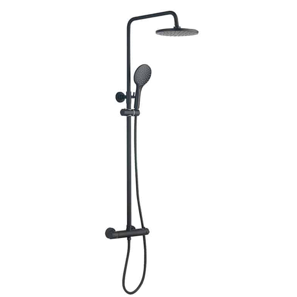 Our Roma Thermo Bar Valve C/W Shower Kit Black features a sleek, modern design that effortlessly blends with any bathroom decor. The minimalist aesthetic is complemented by the striking black finish, adding a touch of elegance and luxury to your bathroom.
