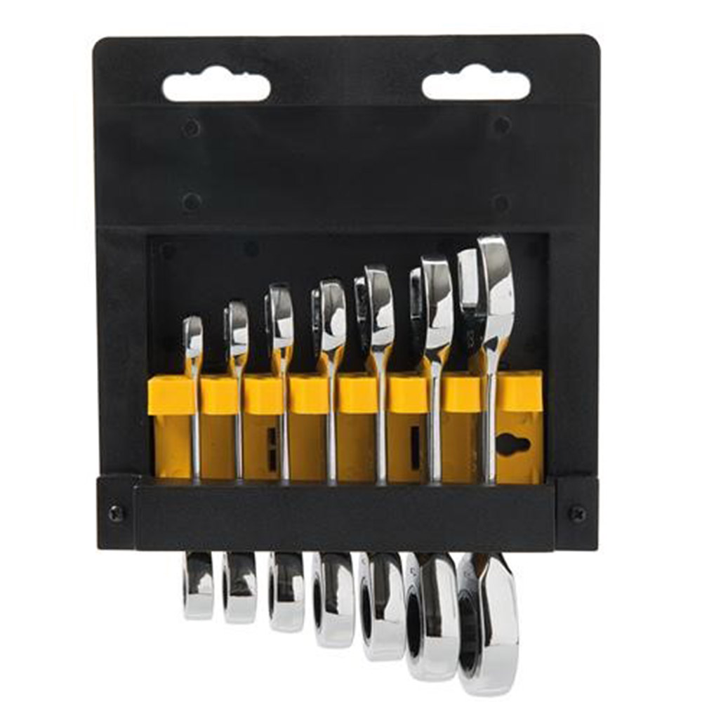The Silverline Stubby Ratchet Spanner Set is engineered for tackling tight spots and hard-to-reach areas with ease and precision. This 7-piece set includes spanners ranging from 8mm to 19mm, providing a comprehensive range of tools in one compact kit. Crafted from high-quality chrome vanadium steel for superior durability and equipped with a smooth 72-tooth ratchet mechanism, these stubby spanners deliver reliable performance for professional and DIY mechanics alike.