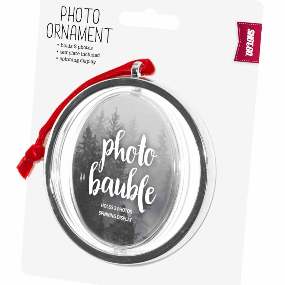 The Spinning Photo Ornament Silver is a beautifully crafted piece with a spinning feature that allows both sides of the ornament to display different photos. Made from high-quality silver, it adds a sophisticated touch to your décor while keeping your memories alive.