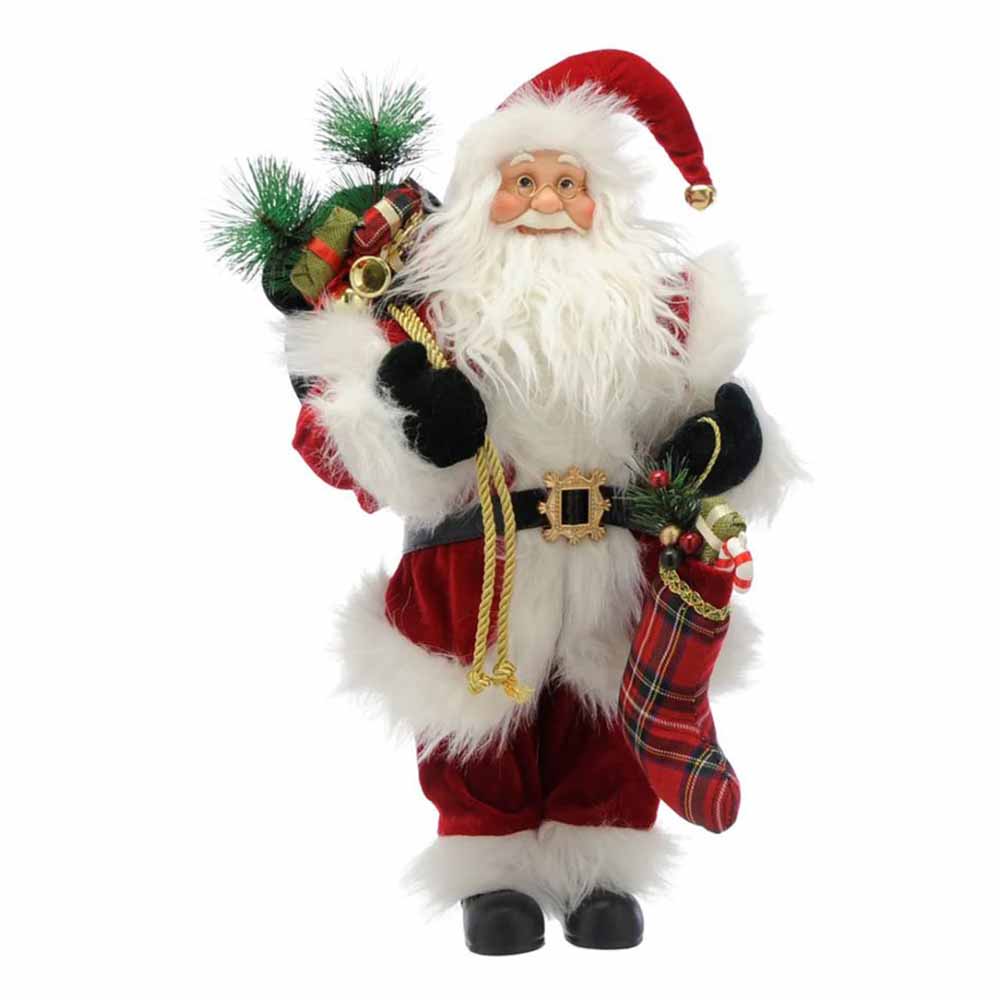 Our Standing Santa is made from high-quality materials that ensure its durability and longevity. The plush red suit, the faux fur trim, and the velvet stocking filled with festive goodies - each material has been carefully selected for its quality and aesthetic appeal.